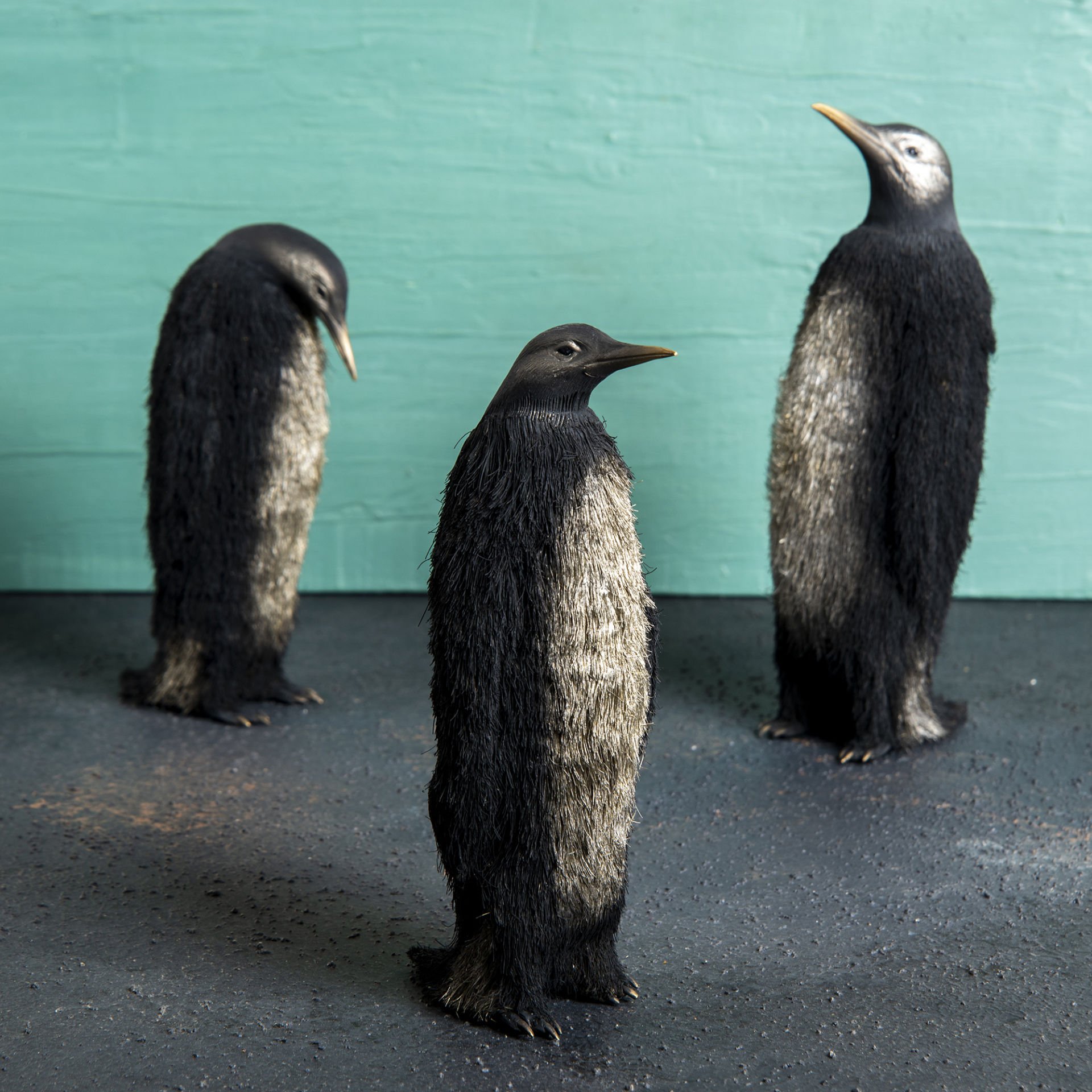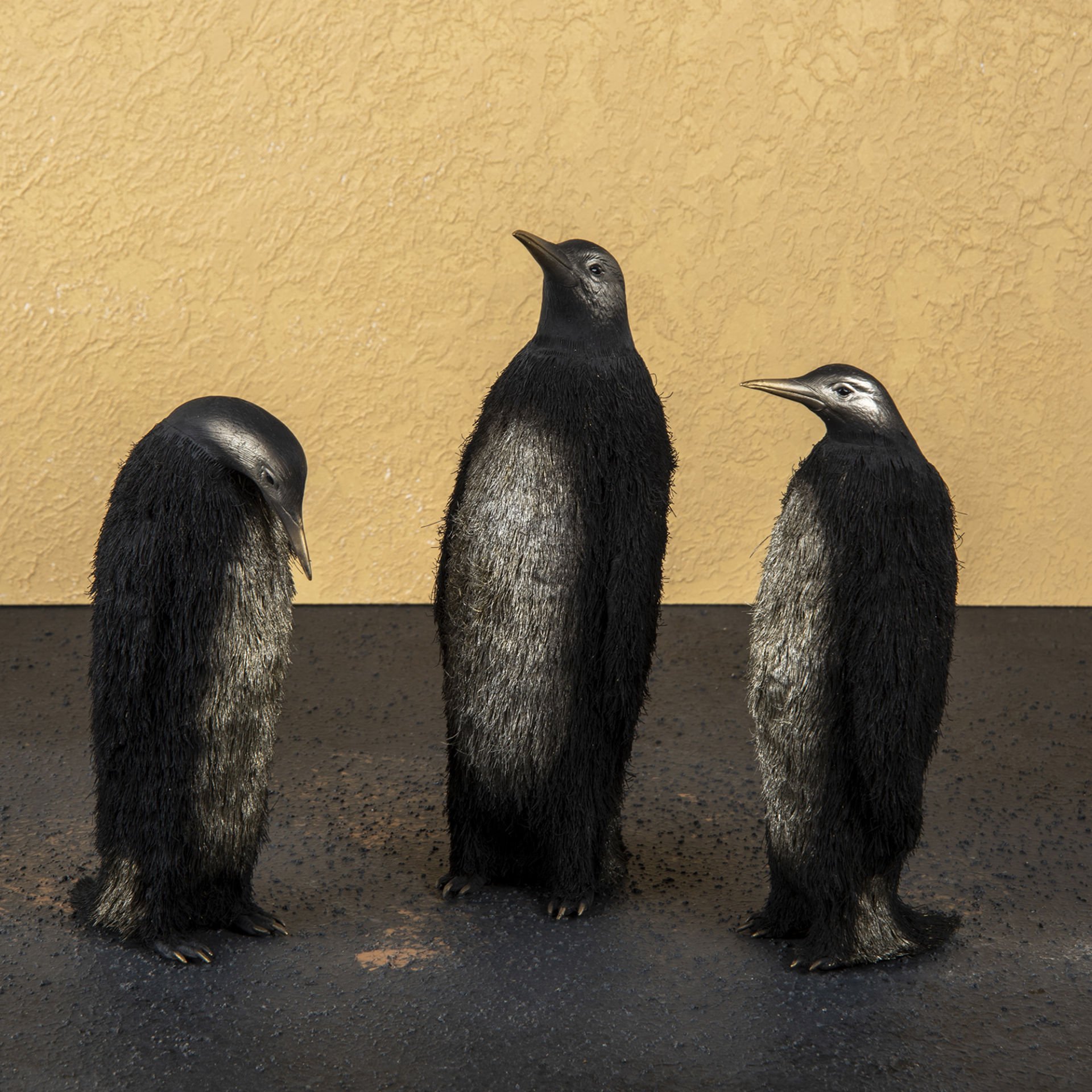 Tamamen pirinçten tasarlamış, özel üretim penguen heykelidir.