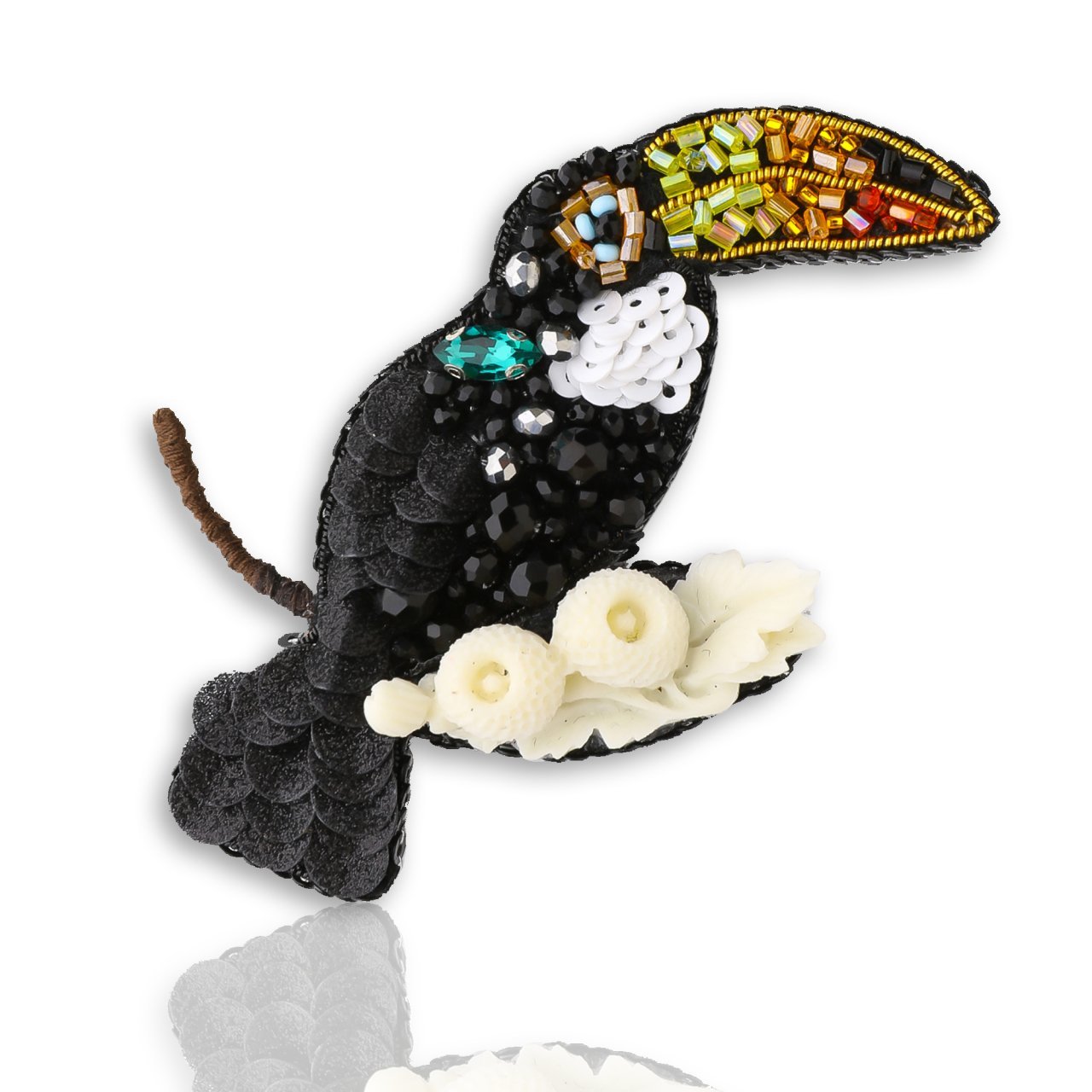 İtalyan pul, asfor marka kristal taşlar, Çek boncuk ve özel taşlarla tasarlanmış arkası deri broştur.
