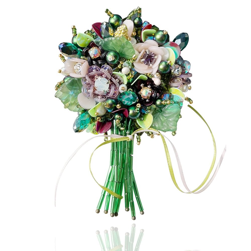Miyuki boncuk, swarovski taşlar, dmc nakış, italya pul ve fransız kurdele ile tasarlanmış arkası kadife broştur.