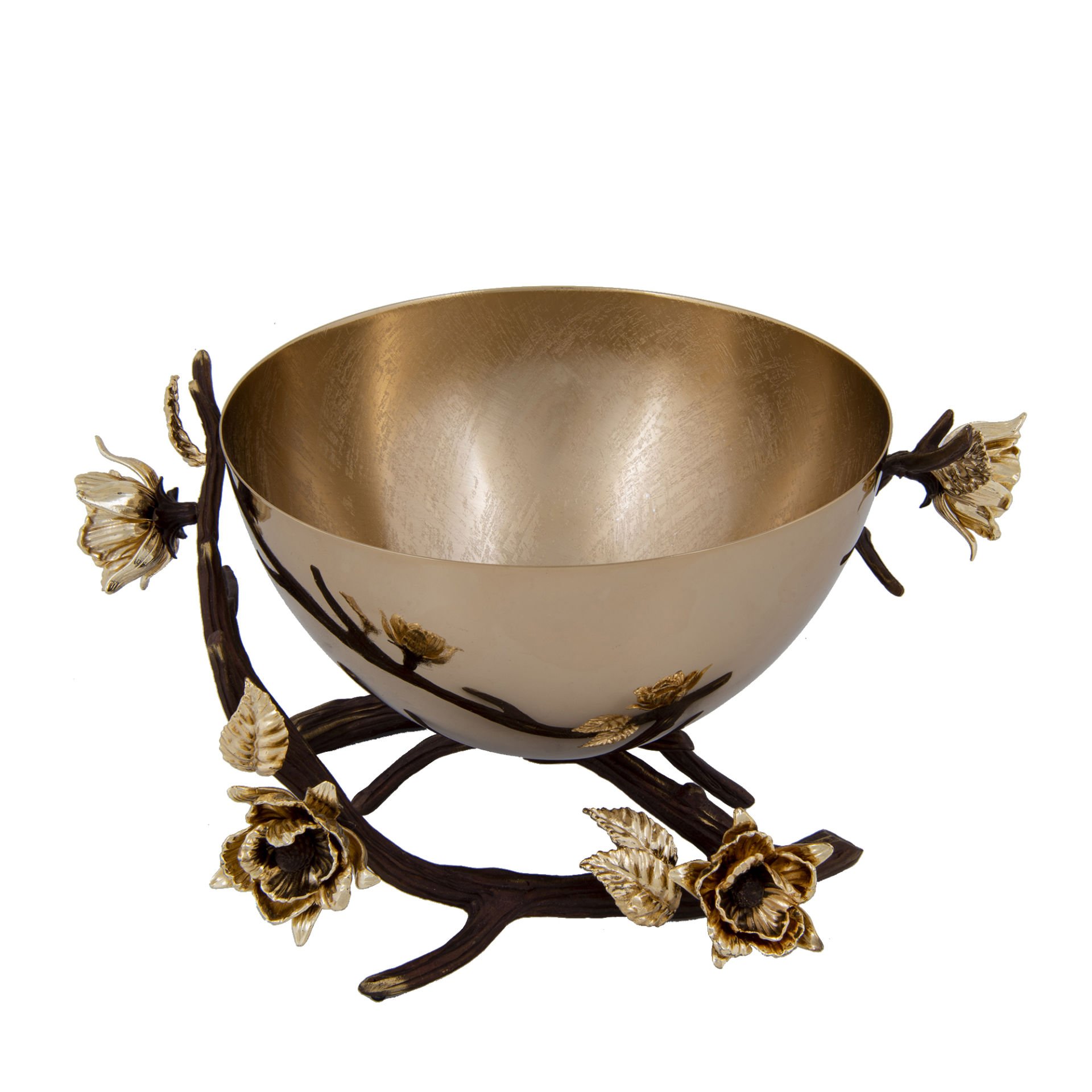 Pirinç dal üzerinde tasarlanmış, gold renkli dekoratif servis kasesidir.