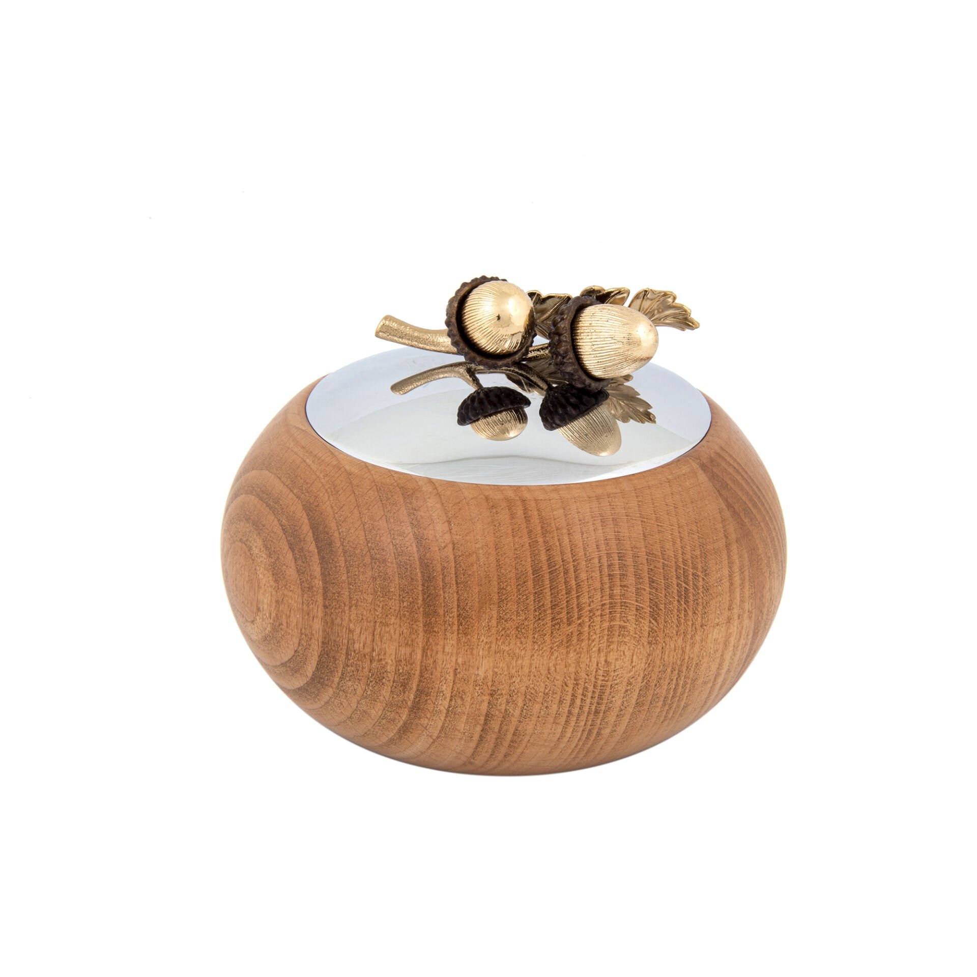 Meşe Formda Gümüş Kaplama Kapaklı Ahşap Dekoratif Kase